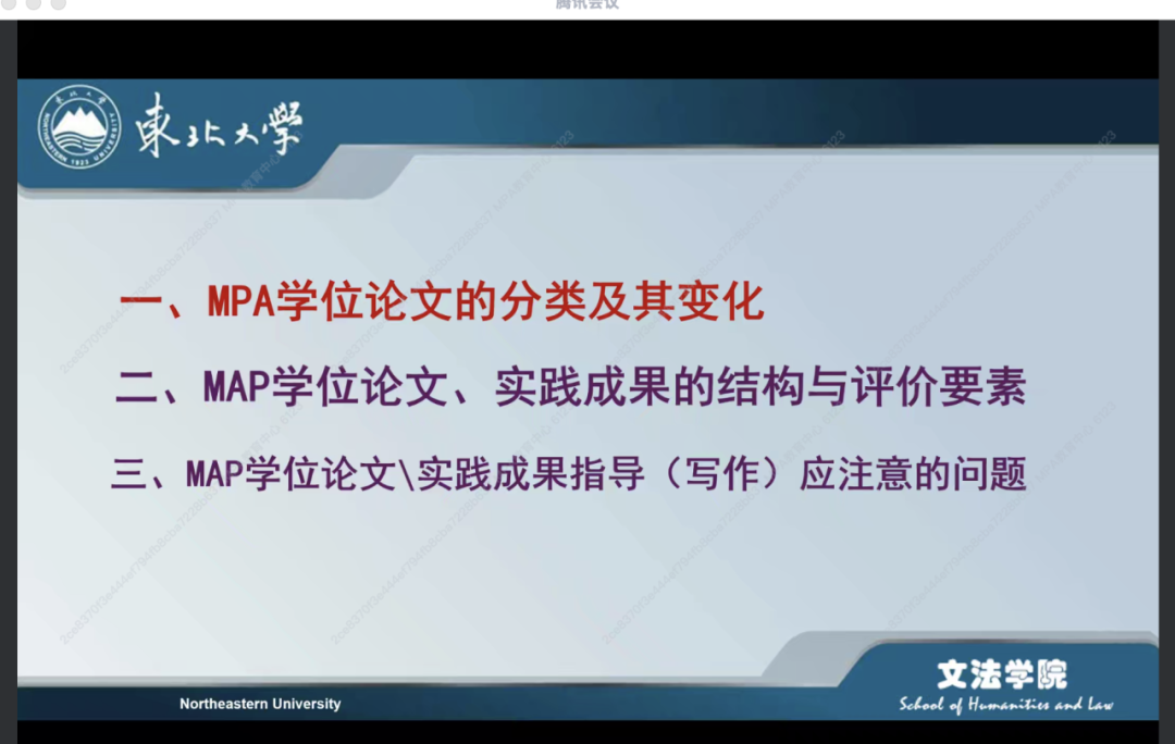 2025-07-152025年5月16日,东北大学文法学院行政管理系教授,博士生导师,教育部高等学校公共管理类学科专业教学指导委员会副主任委员孙萍应邀在电影天堂 “MPA大讲堂”分享“MPA学位论文(实践成果)的分类、选题与写作”主题讲座。 电影天堂 王辉副院长主持了此次讲座,百余名师生通过云端共同参与这场知识盛宴。在讲座正式开始之前,王辉对孙萍的学术背景和研究领域进行了简要介绍,并对其到来表达了热烈的欢迎。孙萍首先介绍...