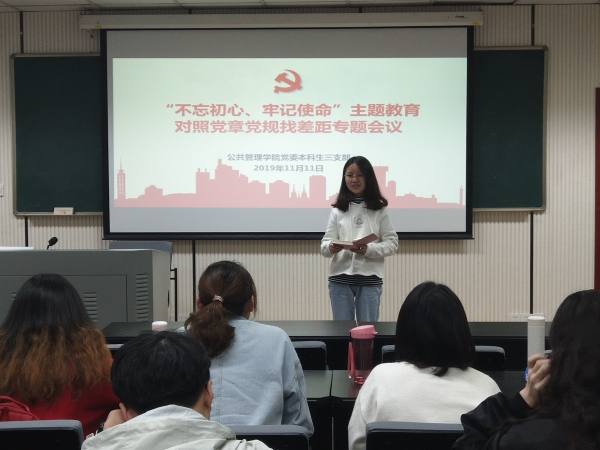 2019-11-15为贯彻落实习近平总书记的重要指示精神,根据学校、学院“不忘初心、牢记使命”主题教育工作安排,围绕守初心、担使命,找差距、抓落实的总要求,2019年11月11日下午, 电影天堂 党委本科生三支部在学院106教室组织召开“不忘初心、牢记使命”主题教育对照党章党规找差距专题会议。会议由支部书记、本科17级辅导员包晗主持,支部全体党员参加会议。会上,包晗带领全体同志学习《中国共产党章程》《关于新形势下党内政治生活...