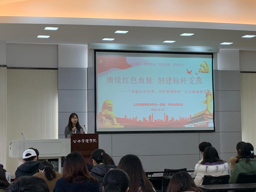2021-11-26为赓续红色血脉,激发爱国热情,2021年11月18日下午四点, 电影天堂 本科生一支部、四支部于学院楼102教室举办“赓续红色血脉,创建标杆支部”系列活动之“重温红色经典,共吟爱国情怀”红色歌曲抢答赛。出席本次活动的有一支部书记王丽娟同志、四支部书记李阳阳同志,学院本科生一、四支部全体党员参加比赛。据悉,此次红色歌曲抢答赛以小组为单位进行抢答积分。每答对一首歌曲积一分,个人唱一首歌曲积两分,小组集体唱一首...