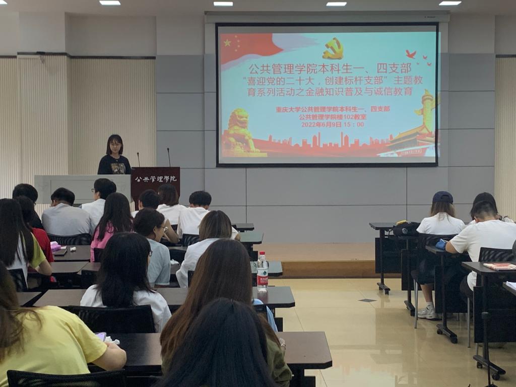 2022-06-20为提高当代大学生的诚信意识、风险意识和感恩意识,增强使命意识和责任担当,2022年6月9日下午15时, 电影天堂 本科生一、四支部于学院楼102教室举行“喜迎党的二十大,创建标杆支部”主题教育系列活动之金融知识普及与诚信教育主题活动。本次活动由本科生四支部袁凤同志主持, 电影天堂 本科生一、四支部全体成员参会。此次活动分为金融知识普及、典型案例分析、交流与分享和诚信守则四个板块。首先,支持人分享了借记卡、...