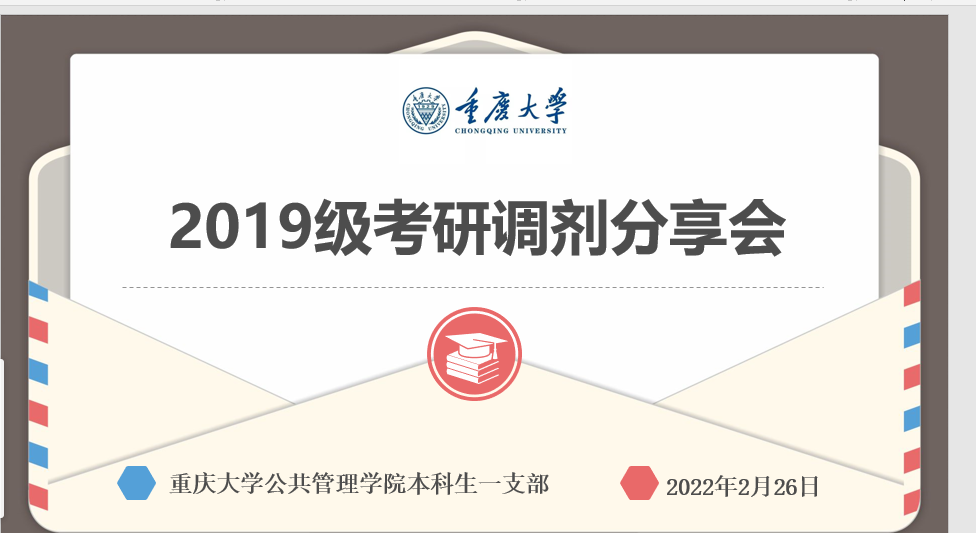 公管学院高度重视学生升学就业工作,在考研成绩出分之际,为让考研学生对考研调剂有更加清晰的了解和认识,提高调剂上岸成功率,2023年2月26日下午,公管学院本科生一支部书记王丽娟组织开展考研调剂分享会,邀请考研调剂成功的17级叶昱宏、杨耀凯,18级曾臻、张桂琳、汪欣五位同学们进行分享,时间近2小时,19级相关同学积极参与。分享会上,学长学姐们主要从以下几个方面对考研调剂进行了介绍。一是调剂前期准备工作。要满足...