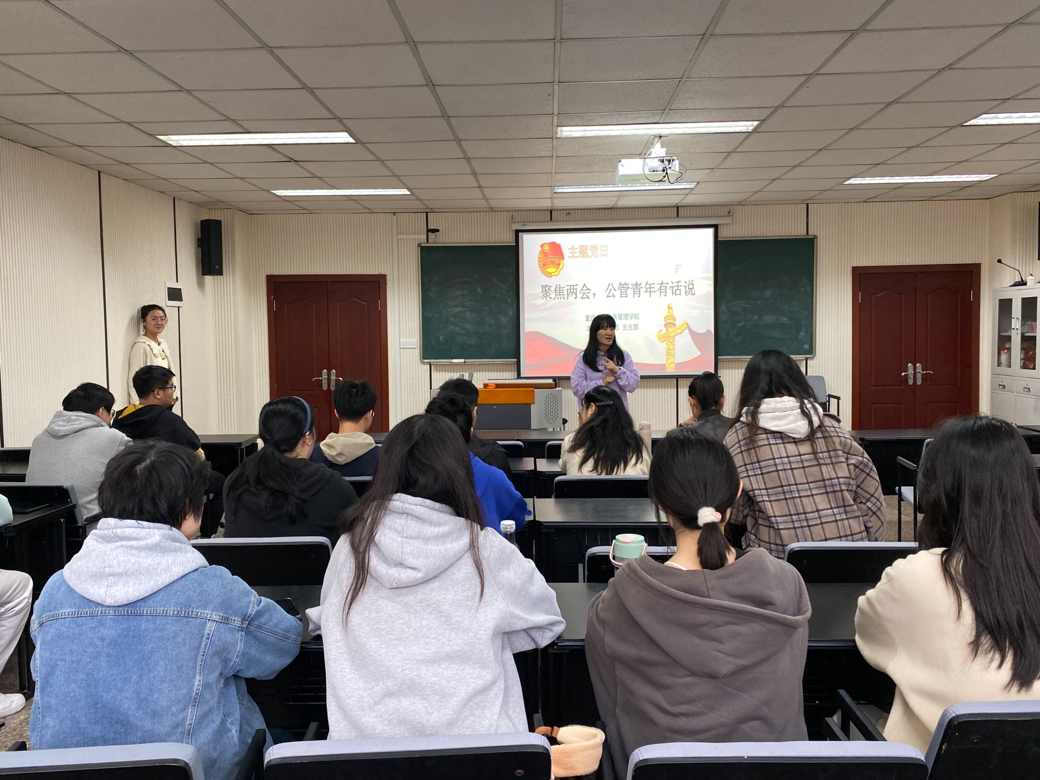 2024-03-25春潮澎湃处,扬帆奋进时。2024年3月4日至11日,备受瞩目的第十四届全国人民代表大会第二次会议和全国政协二次会议在北京召开。 电影天堂 本科生二、五支部青年党员热切关注“两会”盛况,通过多种方式认真聆听,及时了解“两会”动态和精神,并结合自身学习认真贯彻落实“两会”精神,3月21日在学院楼106教室开展了“聚焦‘两会’,公管青年有话说”主题党日活动,集中学习和热议“两会”精神。会议由本科生二支部书...