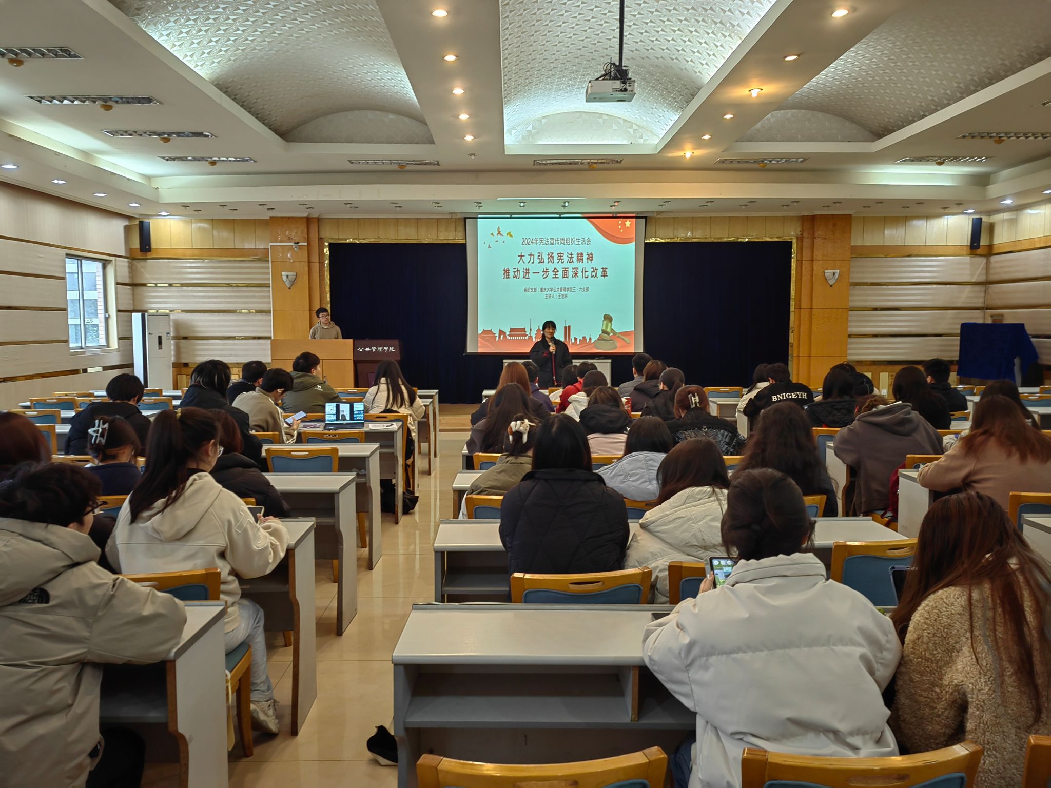 2024-12-142024年12月4日是我国第11个“国家宪法日”,为全面贯彻党的二十大和二十届三中全会精神,深入学习习近平法治思想和习近平总书记关于宪法的重要论述,不断提升青年学生的法治素养、理论水平,2024年12月5日下午15点, 电影天堂 本科生三、六支部在学院楼202会议厅联合开展了以“大力弘扬宪法精神,推动全面深化改革”为主题的党日活动。2023级本科生辅导员徐柳、全体学生党员及入党积极分子到场参加活动。首先,本科生六支部入...