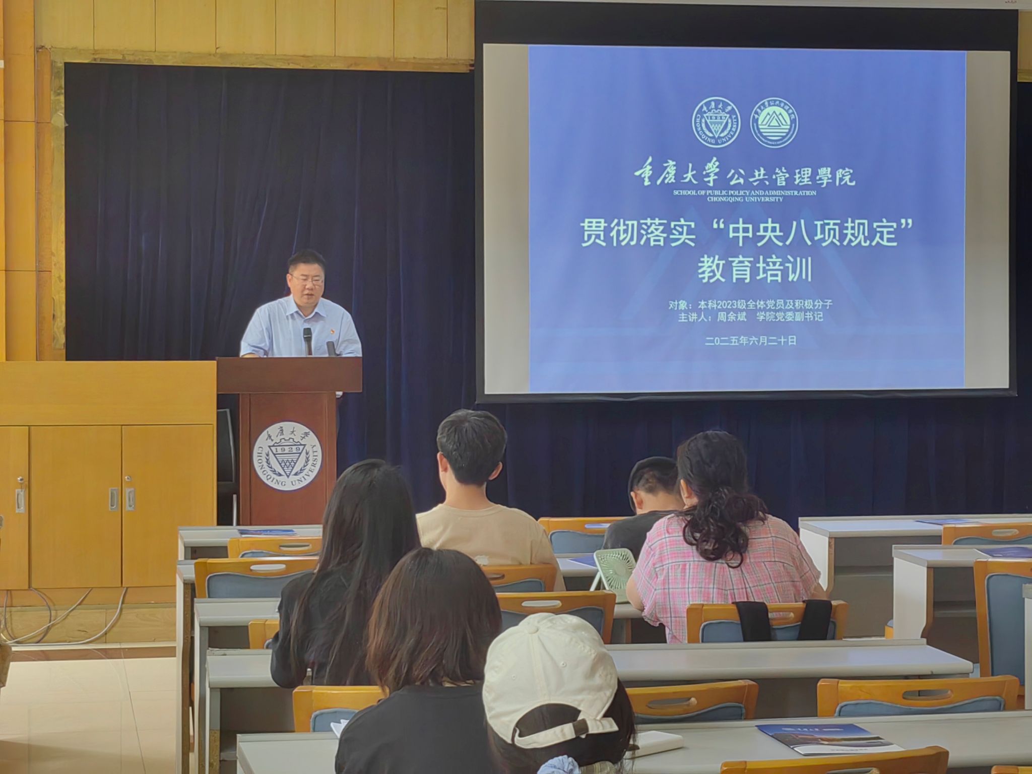 2025-06-27为持续深入贯彻中央八项规定精神,扎实推进党的作风建设,筑牢青年党员理想信念根基,提升政治素养与党性修养,2025年6月20日16时, 电影天堂 党委副书记、纪委书记周余斌同志为学院本科生三、六支部讲授了贯彻落实中央八项规定精神专题党课,本科生三、六支部全体党员及入党积极分子到场参加。周余斌书记首先带领同学们系统学习了《十八届中央政治局关于改进工作作风、密切联系群众的八项规定》原文,深入解读其核心要求、...