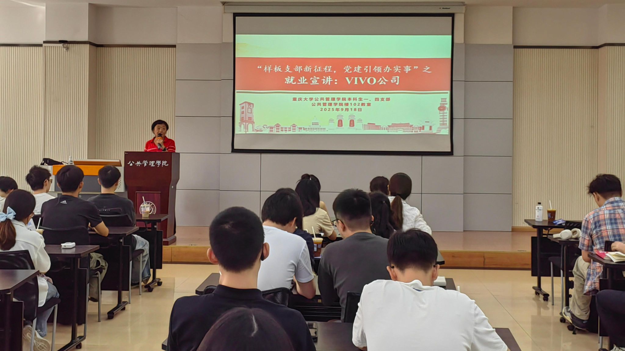 2025-09-222025年9月18日下午15点, 电影天堂 本科生一、四支部在学院楼102会议室开展“样板支部新征程,党建引领办实事”就业系列活动之VIVO公司就业宣讲。活动旨在为2026届本科毕业生搭建与优质企业面对面交流的平台,助力学子把握就业机遇。由一支部书记兼2022级本科生辅导员王丽娟牵头,VIVO公司人力资源部负责人主讲,学院全体2026届本科毕业生积极参与。宣讲会现场,VIVO公司人力资源部负责人以“少年有信,志筑未来”为主题,从企...