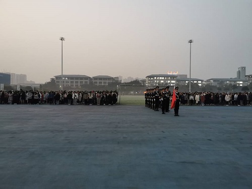 虎溪校区风雨操场参加了学校举行了“升国旗,唱国歌”主题升旗仪式。学办主任兼19级辅导员王丽娟、20级辅导员李珊珊及19、20级全体同学出席了本次仪式。