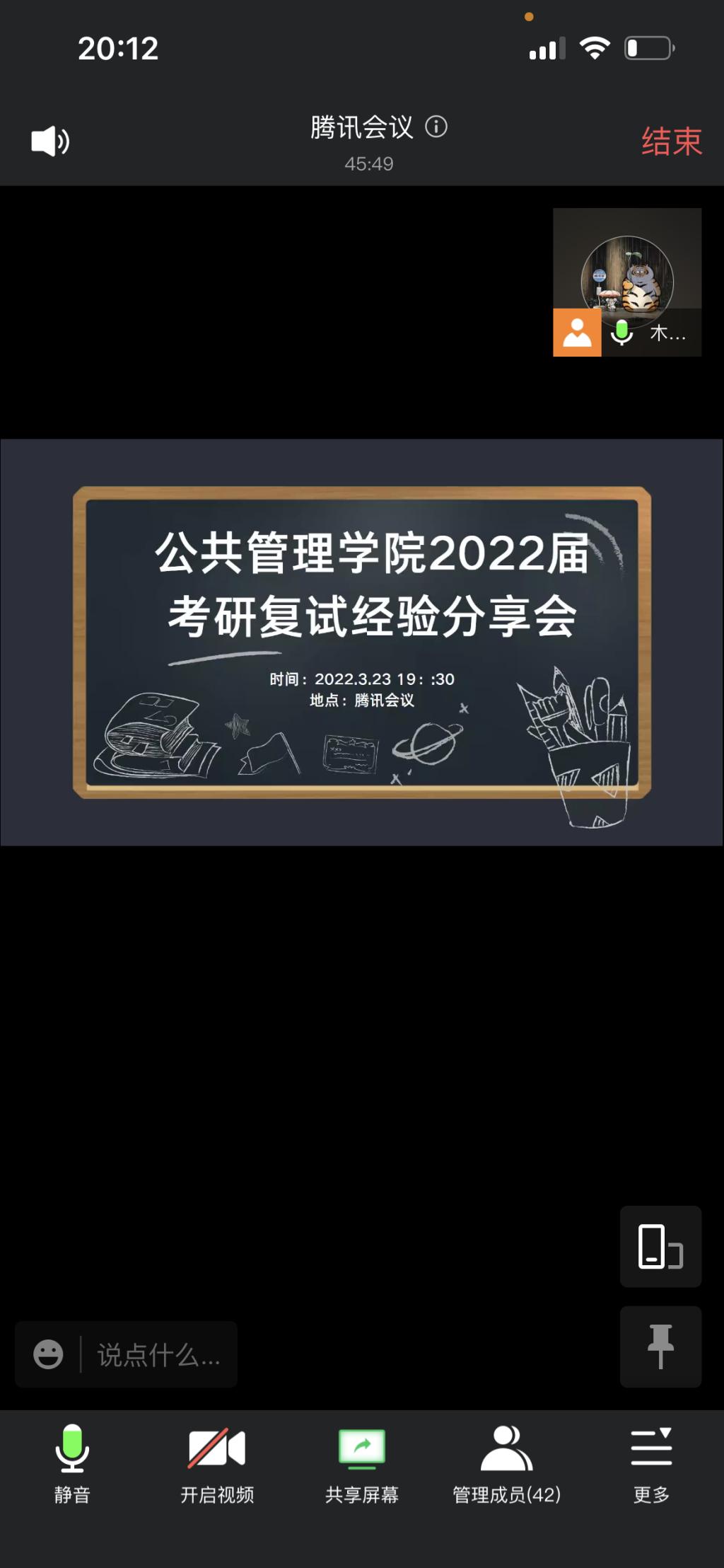 团委书记、2022届辅导员徐柳老师主持、42名考研学子参会。