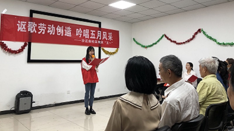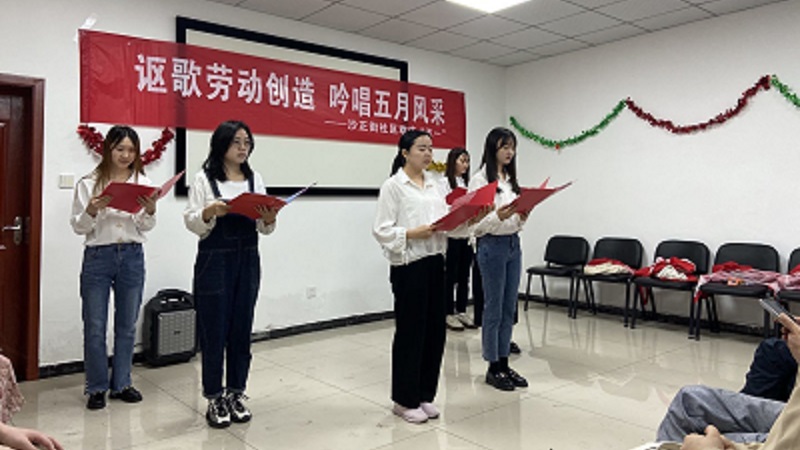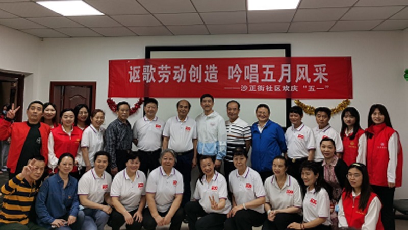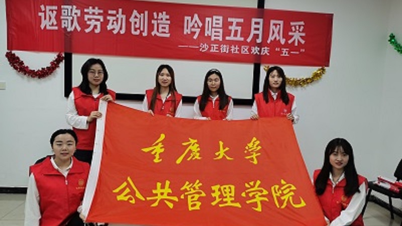 郭明义爱心团队公管学院分队联合重庆市沙坪坝区沙正街社区,开展了“讴歌劳动创造,吟唱五月风采”迎劳动节志愿活动。