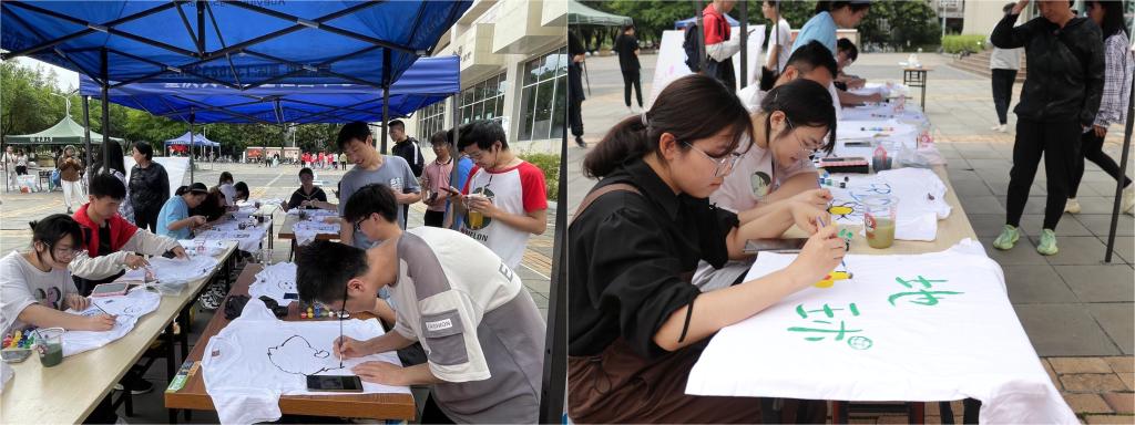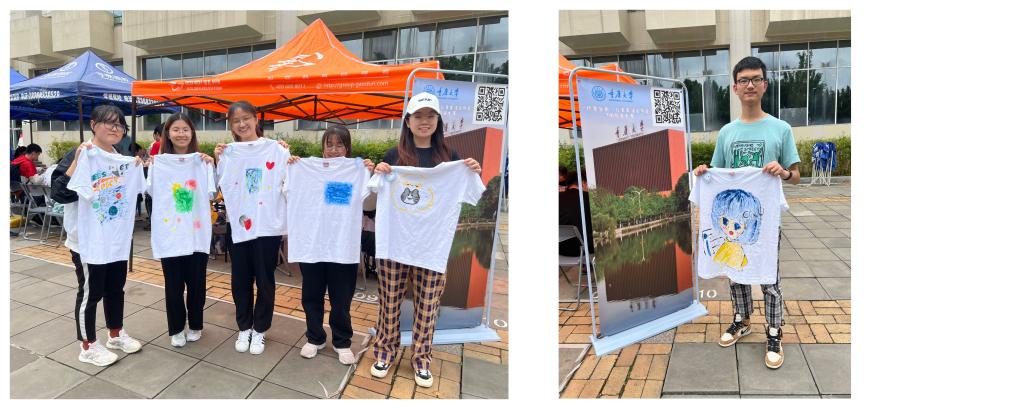 虎溪校区一食堂南广场举办了首场T恤绘画活动。学院学办主任兼19级辅导员王丽娟、团委书记兼18级辅导员徐柳、20级辅导员包晗到场参加。
