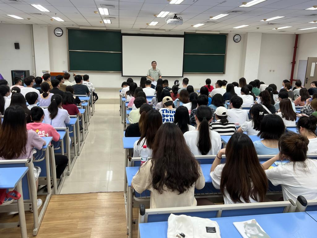 党委在学校主教107教室举行了“新党员入党宣誓、老党员重温誓词”主题党日活动。学院90余名新党员、50余名老党员代表,共计140余名师生参加了此次活动。