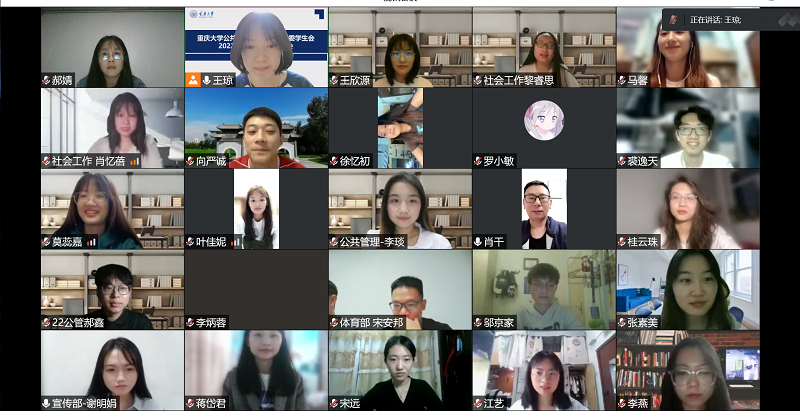 2022届研团学换届大会顺利举行,受疫情影响,此次大会采取线上会议的形式开展。出席本次会议的有研究生指导老师肖干老师、李珊珊老师,另外还有学院研团学新老成员。本次换届大会由学院21级研团学组织部部长王琼主持。
