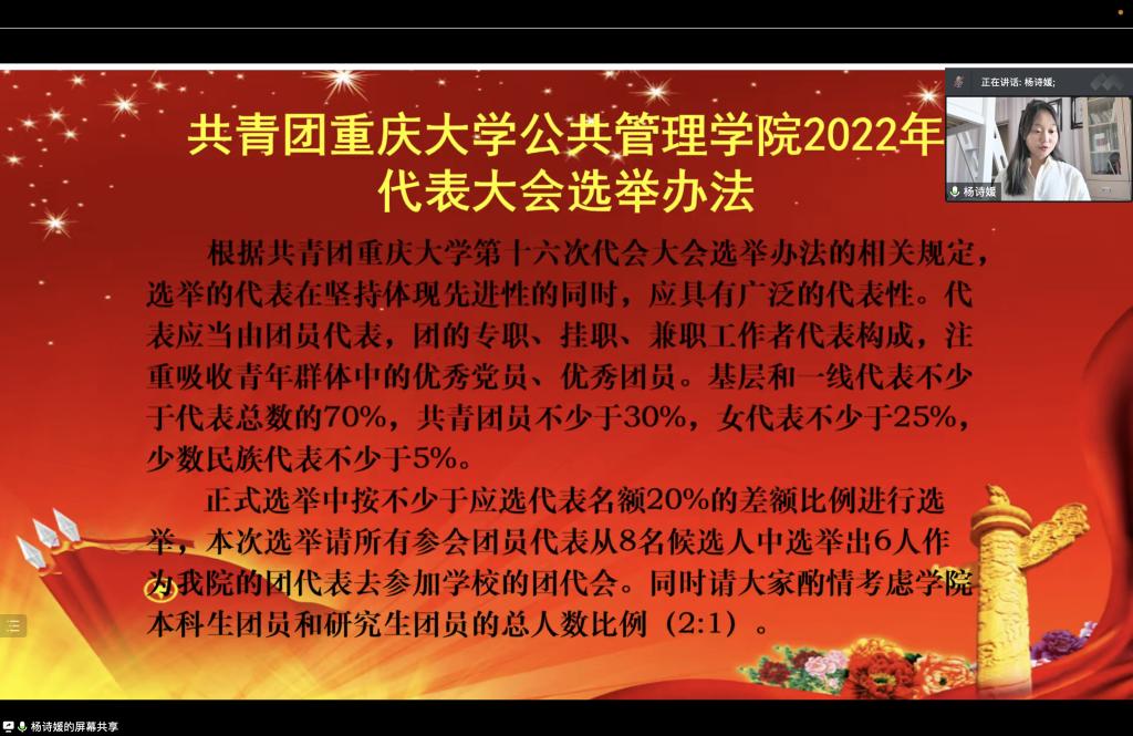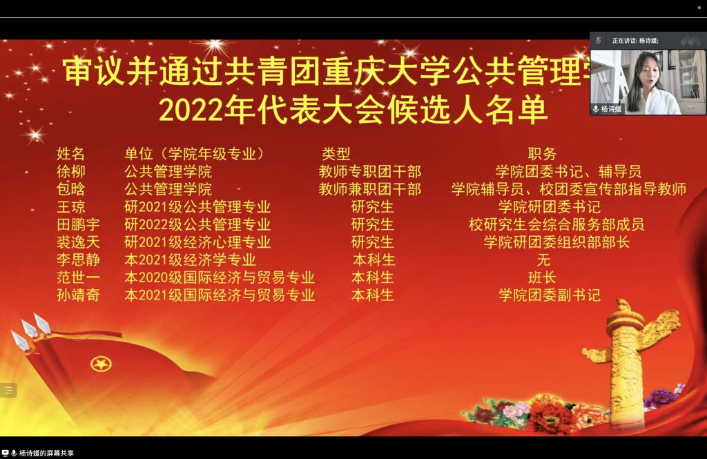 第十六次代表大会于2022年12月8日下午13:50在线上召开。学院学办主任兼19级辅导员王丽娟、团委书记兼21级辅导员徐柳、20级辅导员包晗、研究生22级辅导员李珊珊,及203名学院本科生、研究生团员代表在线参会。