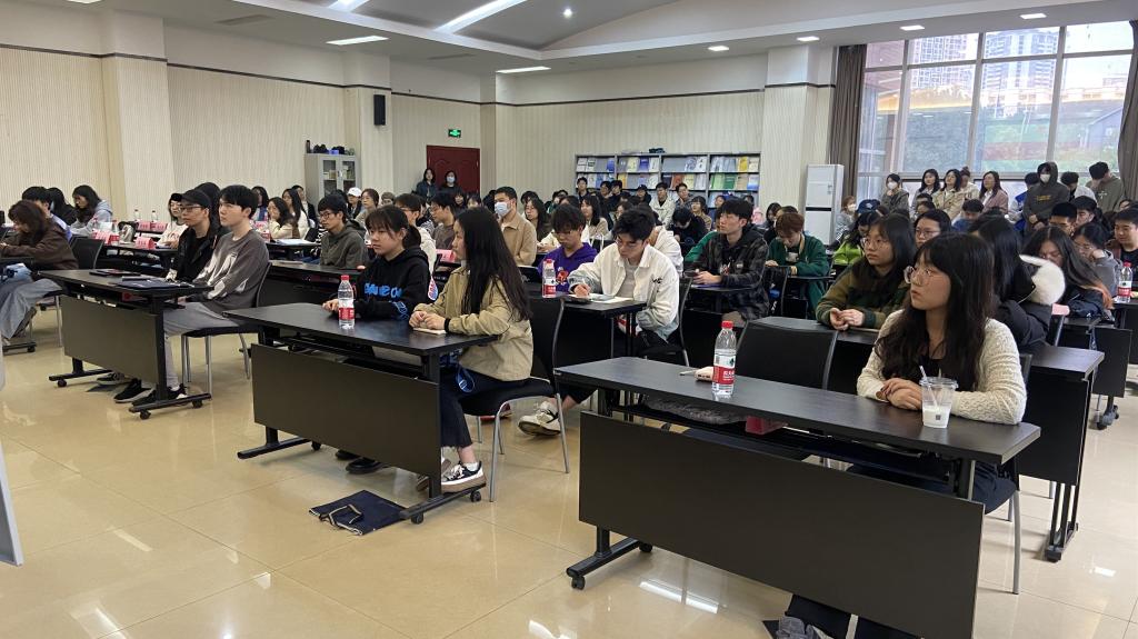 包晗围绕本学期重点工作进行安排和说明,他强调,本学期是各位同学本科生涯的关键时期,希望同学们能尽快找准自己的目标定位,把更多的时间和精力投入到课程学习以及升学、出国或考公、就业等个人发展的准备工作中,充分利用大学最后的冲刺阶段,为自己的理想奋斗。同时,他还提醒大家,要密切关注自己的学分修读情况,及时在教学系统中核查课程修读情况,确保顺利通过毕业学分审查。