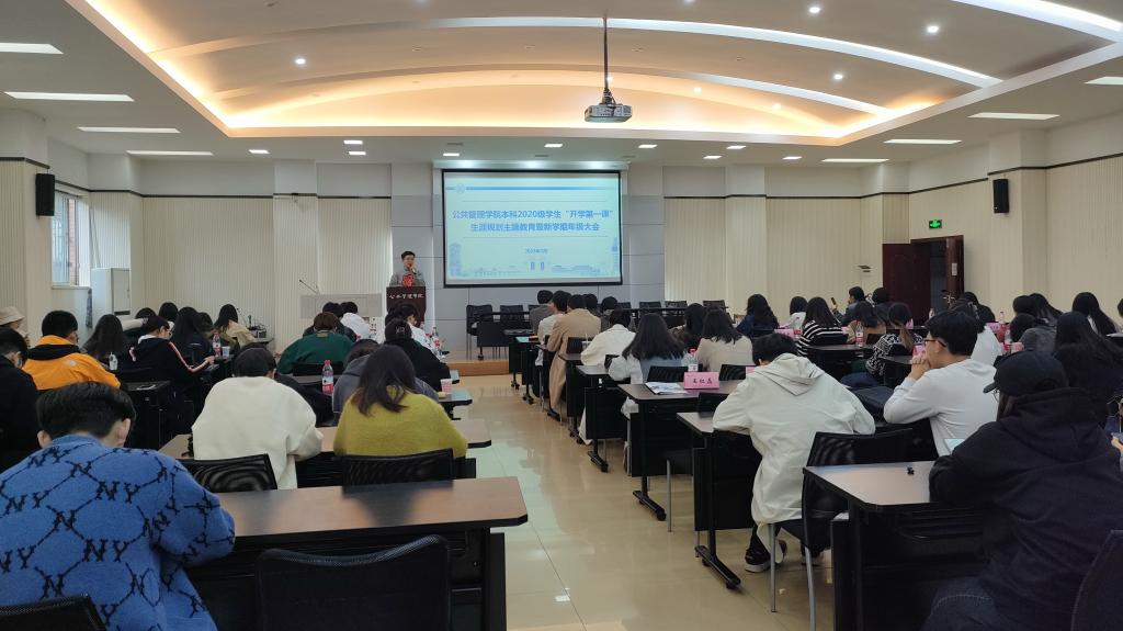 2020级本科生“开学第一课”生涯规划主题教育暨新学期年级大会在学院102多功能厅举行。2020级辅导员包晗主持会议,2019级推免生代表、2020级全体同学参加。
