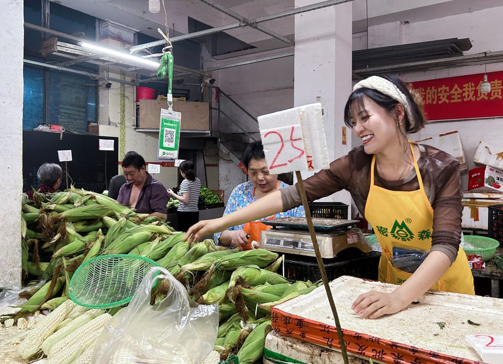 ▲实践营学员通过协助菜市场摊主卖菜的方式,身体力行开展实践调研 受访者供图