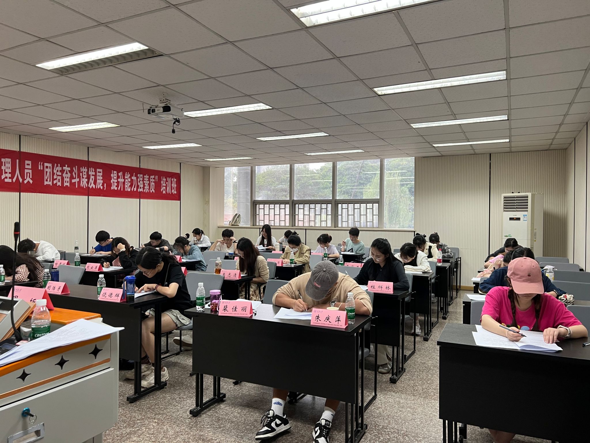 2023年9月21日中午,学院党委在学院102、104和106教室组织了2023-2024学年上学期党课考试”。包括研究生本科生在内的110余名入党积极分子参加了考试。