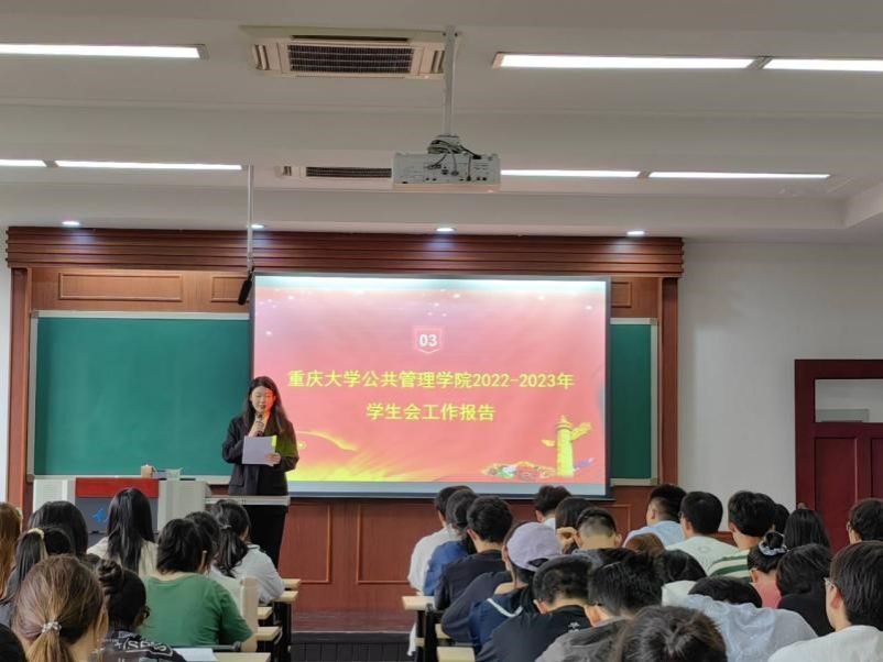 团委学生会主席吴悠代表学生会做2022-2023年度学生会工作报告。吴悠首先回顾了公管学院团委学生会在过去一年取得的丰硕成果,从思想引领、学风建设、文艺体育、社会实践等方面详细介绍了学生会的工作情况,并祝愿下一年学生会能以坚韧不拔的信念、舵手般的智慧和热情在学生工作的海洋中继续破浪前行。苏雪莹对学院2023-2024届团委学生会换届选举结果进行公示,全体参会同学审议并通过换届选举结果。