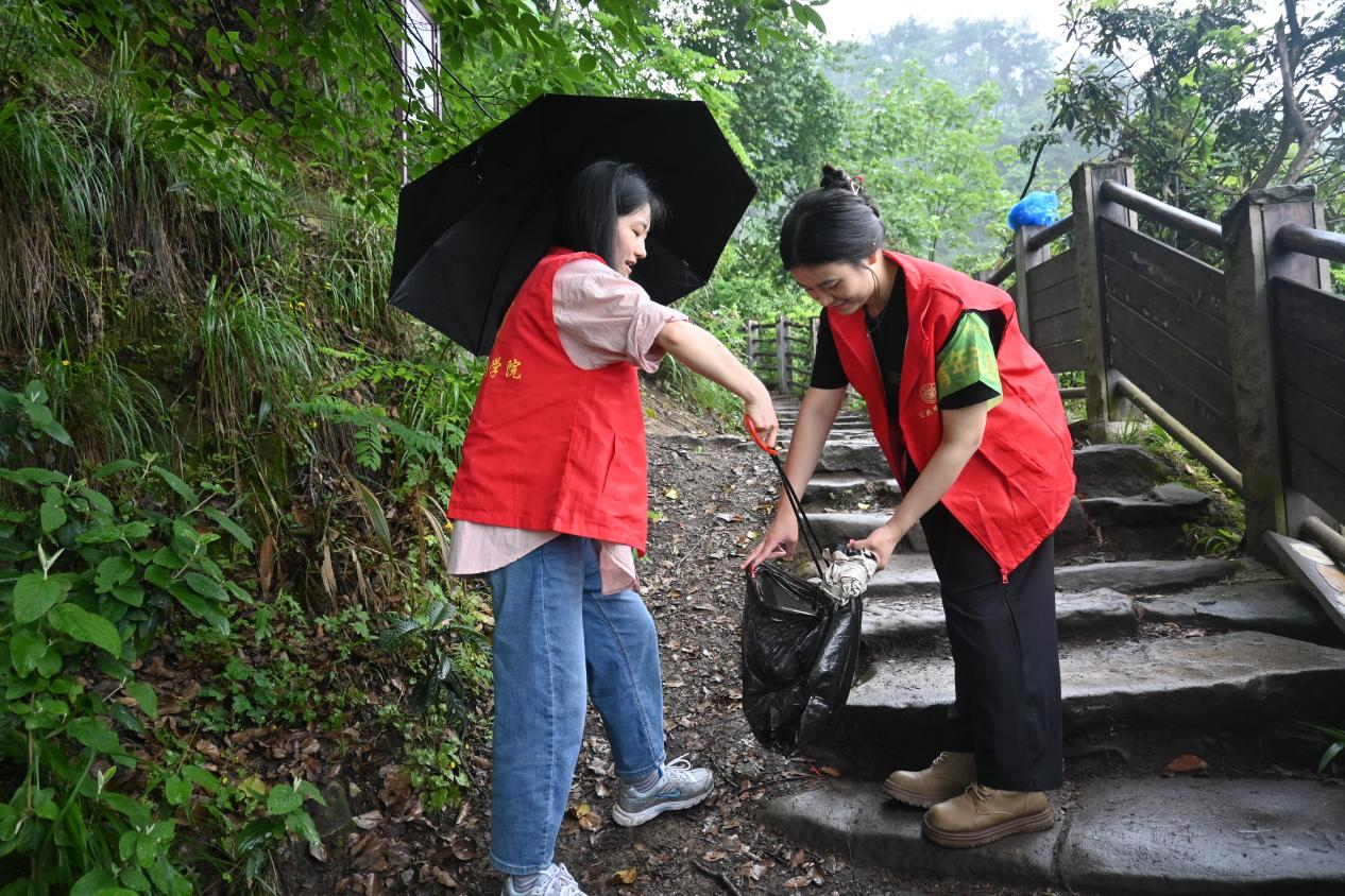 组织学生积极进行社会实践,践行“尚道至公,管泽天下”的院训,前往重庆歌乐山国家森林公园开展“守护青山,‘益’起行动”志愿服务活动,动员同学们从点滴做起,增强生态文明建设的紧迫感和责任感,将绿色发展的理念内化于心,外化于行。