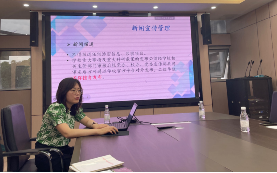 赵深艳主要围绕学校新闻宣传导向、宣传原则、宣传效果、宣传管理、新闻摄影等方面展开阐述。她以其丰富的经验和独到的见解重点讲解了如何做好院级宣传工作以及如何做好新闻挖掘与新闻储备工作。