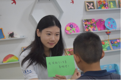 “我是小老师”关卡让小朋友化身为实践团大哥哥大姐姐的小老师,在教大家学一句哈尼语、唱一首哈尼歌、跳一段哈尼舞的过程中,增强孩子们的民族自信心和自豪感。“啊古吗嘎朋友”(我们是好朋友)、“伙扎”(吃饭)、“乌疏”(开心)……小朋友的语气虽然腼腆,但无一不洋溢着对自己民族文化的深厚感情。