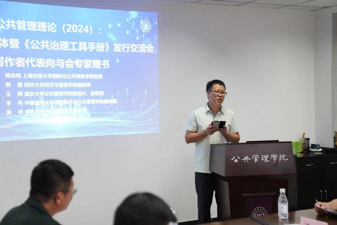 王辉副教授、中国海洋大学李丹副教授、中央党校吴佳博士向与会专家赠书后,上海交通大学国际与公共事务学院教授、《手册》副主编韩志明代表团队发言致谢,指出要让思想和理论更好地指引未来,让工具和方法能够更好地改造现实。
