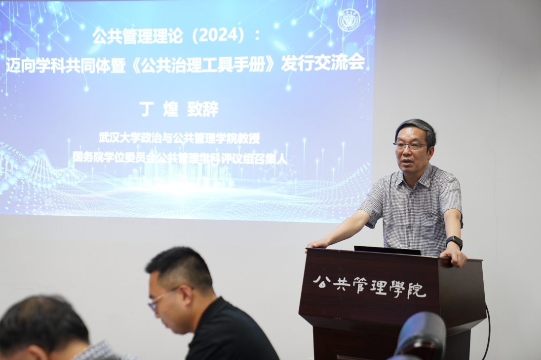 在主题发言环节,丁煌教授围绕“迈向学科共同体:总体设计与发展愿景”,回溯公共管理学科发展历史,并阐述学科目录调整过程中学术共同体的建设举措。