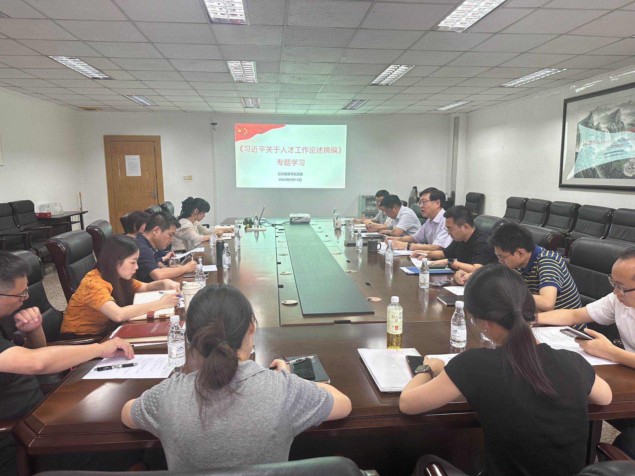 9月12日下午,公管学院党委召开干部人才队伍建设工作专题会,第一议题学习了《习近平关于人才工作论述摘编》。学院党委书记陈东主持会议。