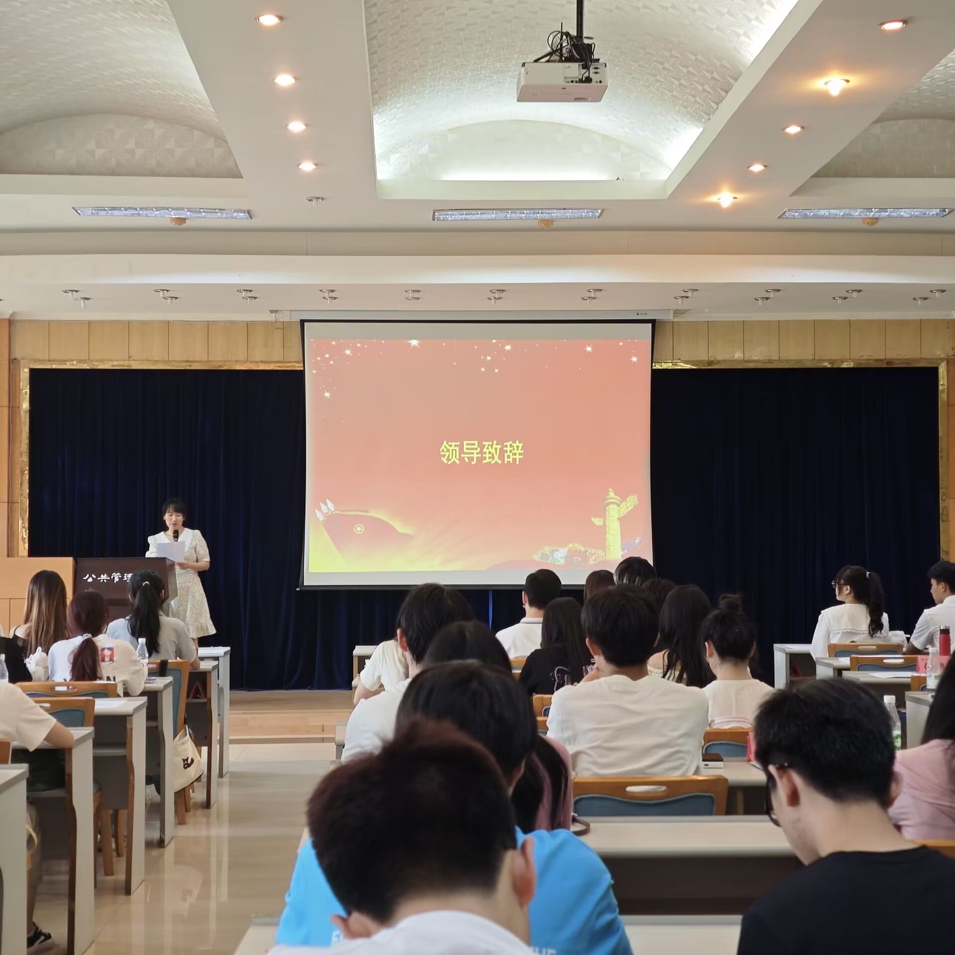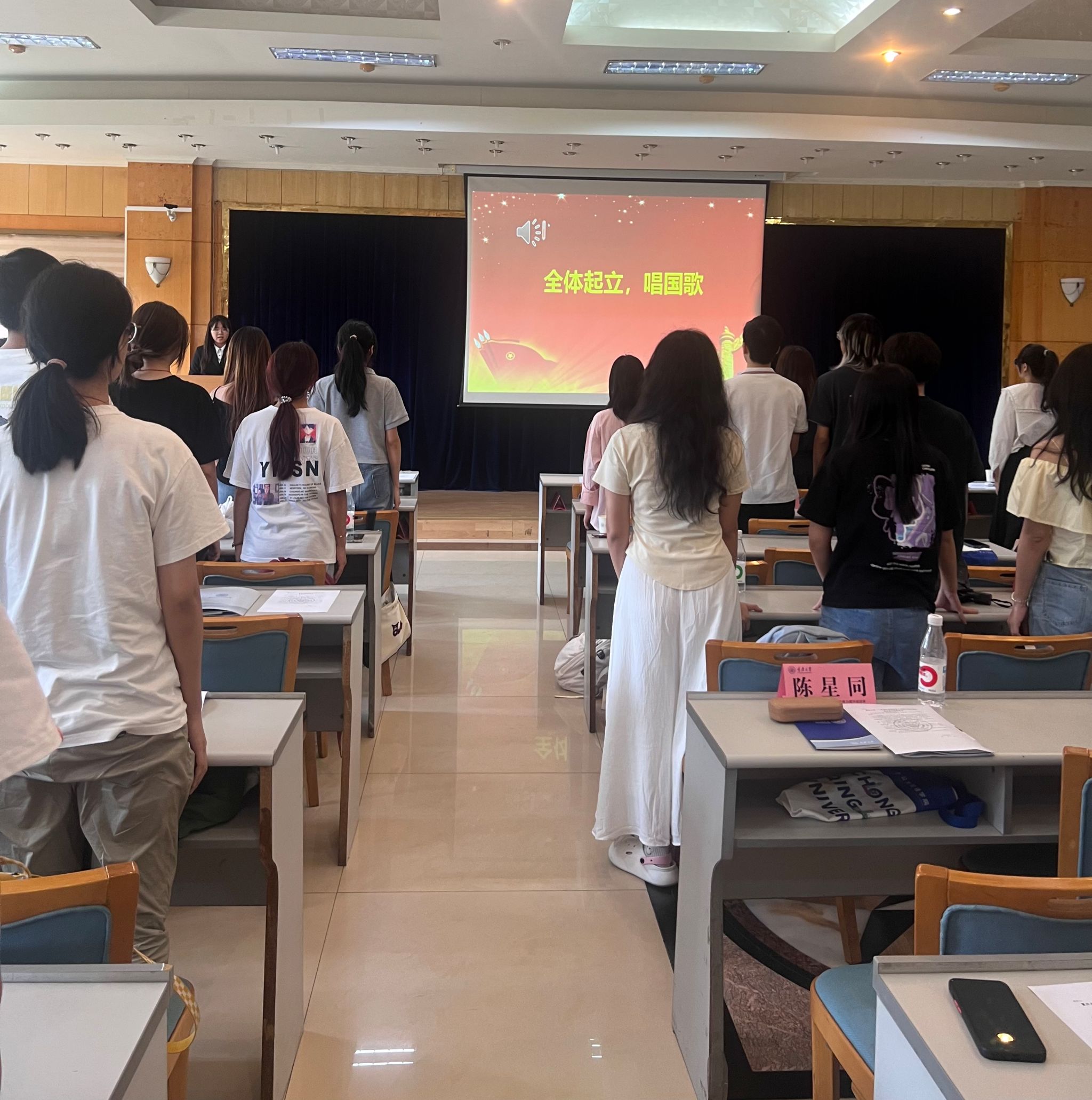 大会由学院本科生学生会主席黄丹怡主持。会议伊始,全体起立,奏唱国歌,在高昂的歌声中,本次学生代表大会正式拉开序幕。