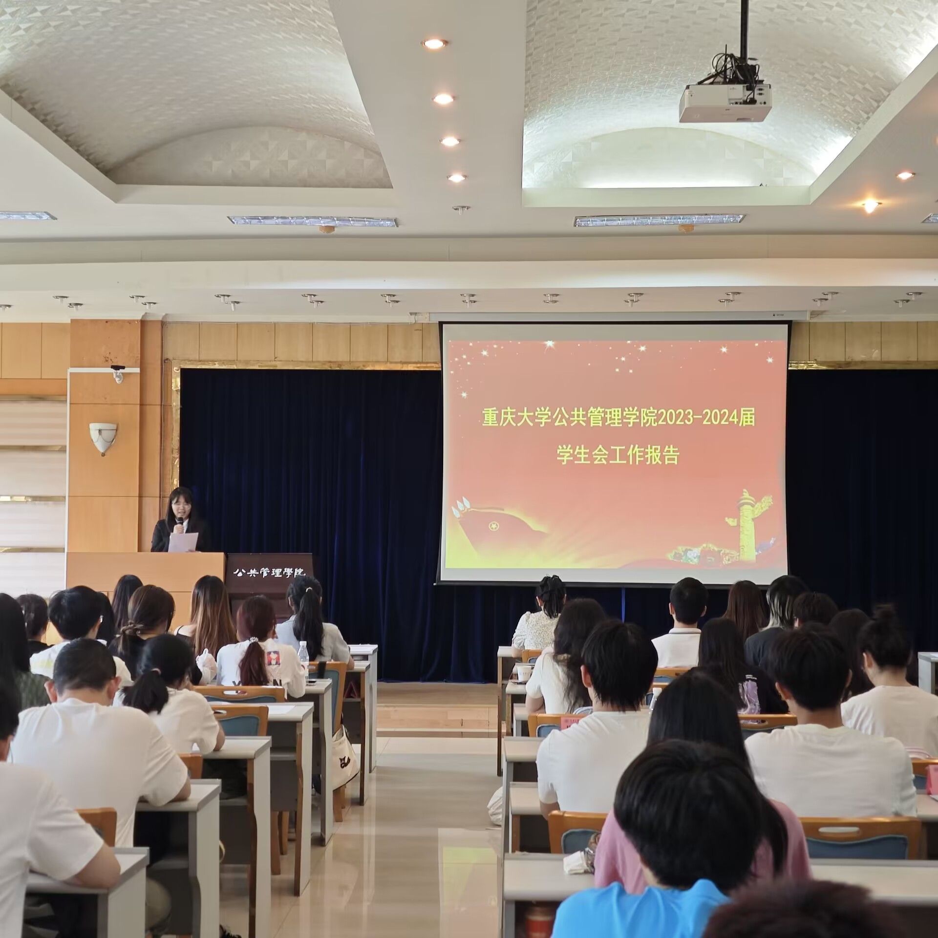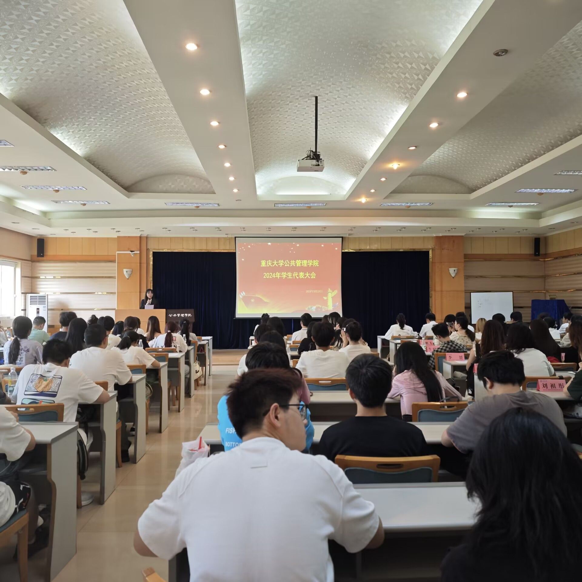 2024年本科生学生代表大会于学院202报告厅召开。院团委书记、学生会秘书长徐柳以及110多名来自学院2021级、2022级、2023级的本科生学生代表参与了本次大会。