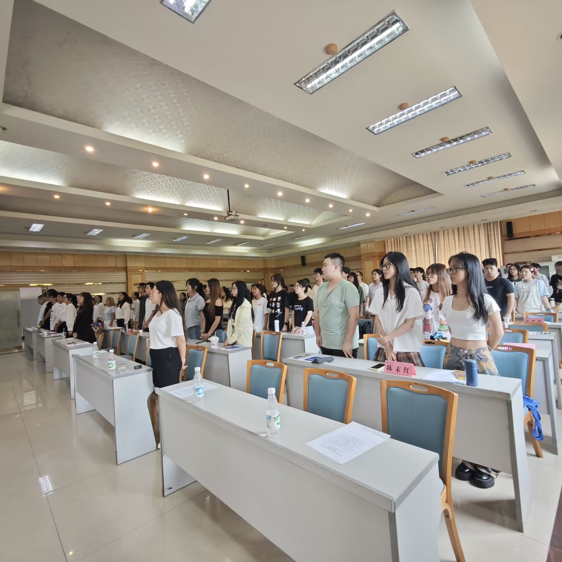 会议闭幕式上,全体同学齐唱共青团团歌《光荣啊,中国共青团》。激昂的旋律在空气中回荡,振奋着每一个年轻的心灵,同学们深深感受到了共青团的光荣使命和圣神职责,青春和梦想激励着同学们凝聚坚定信念、培育奋进精神,为祖国的繁荣富强贡献自己的青春和力量。