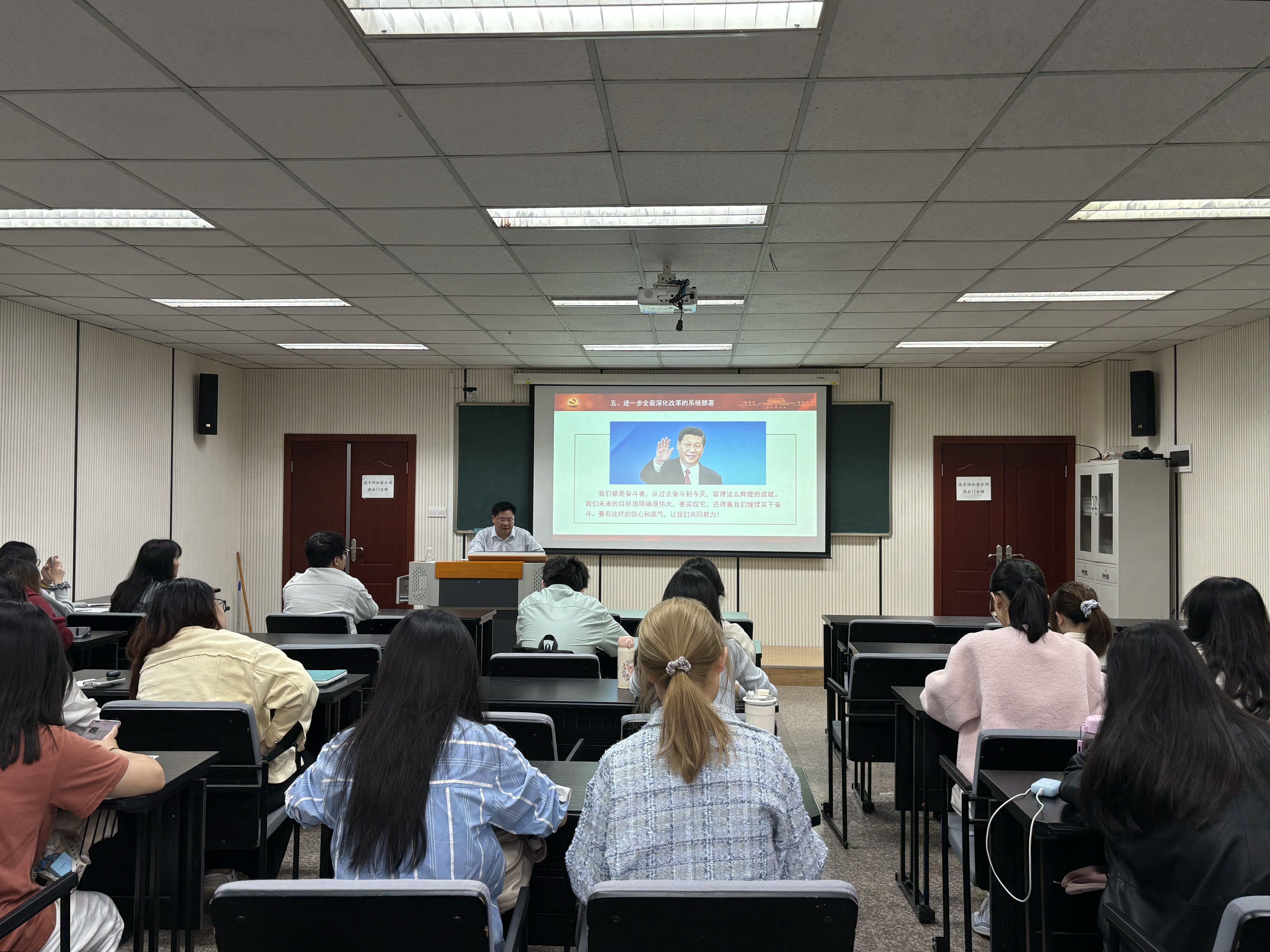 党委副书记、纪委书记周余斌给学院本科二、五支部讲授“深入学习贯彻党的二十届三中全会 共筑中国式现代化”主题党课活动。本科生二支部书记徐柳主持,本科生二、五支部全体党员同志到场参加。