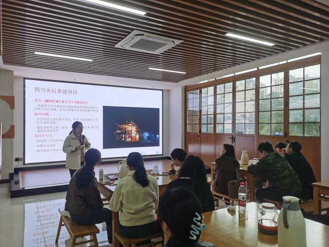 活动最后,胡晓芳向学生们介绍了成都市爱有戏社区发展中心开展的爱乐园全龄友好生活空间的建设项目,并将成渝两地的社会治理创新经验进行初步比较,以启发同学们进一步思考和讨论。