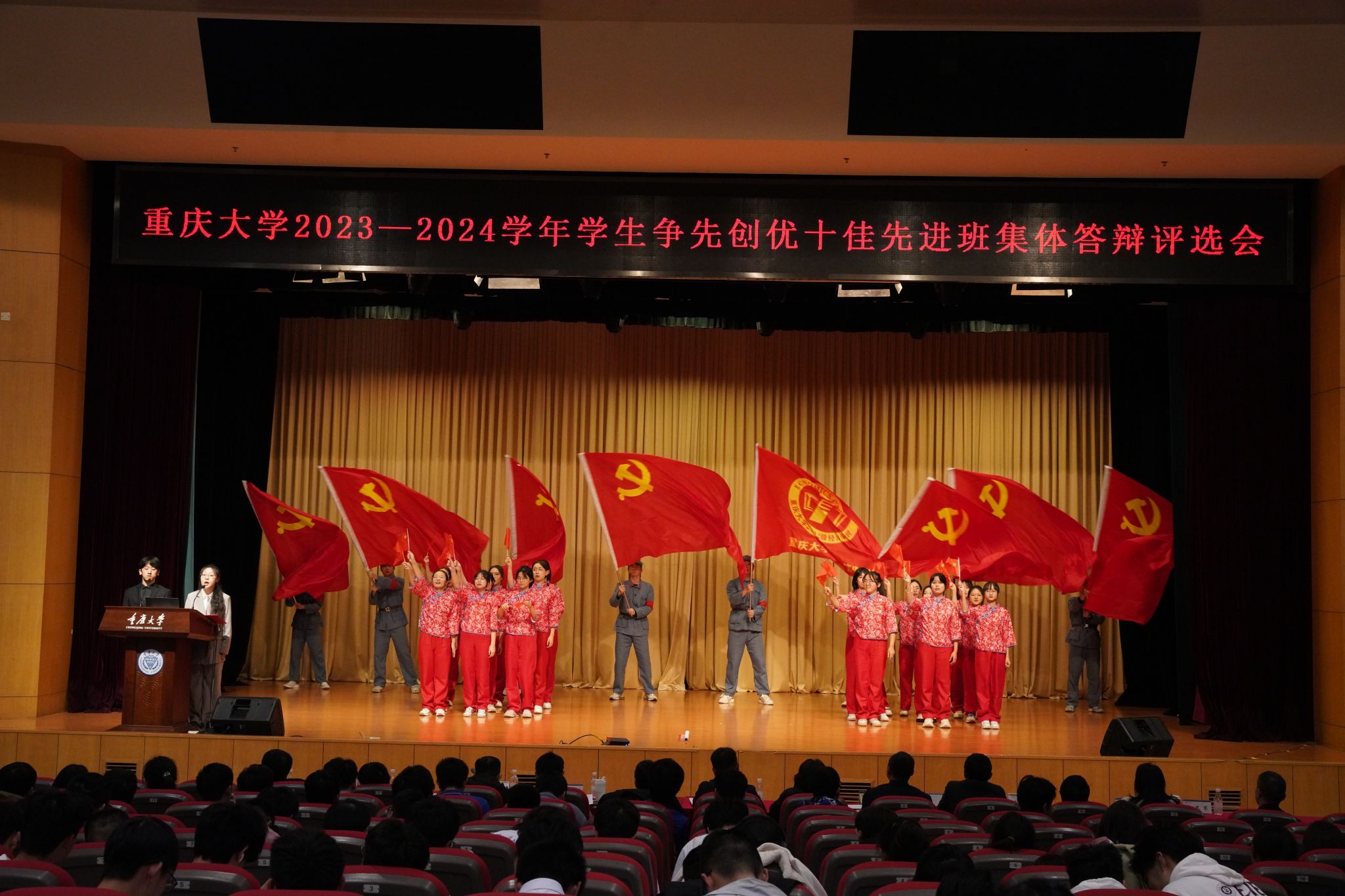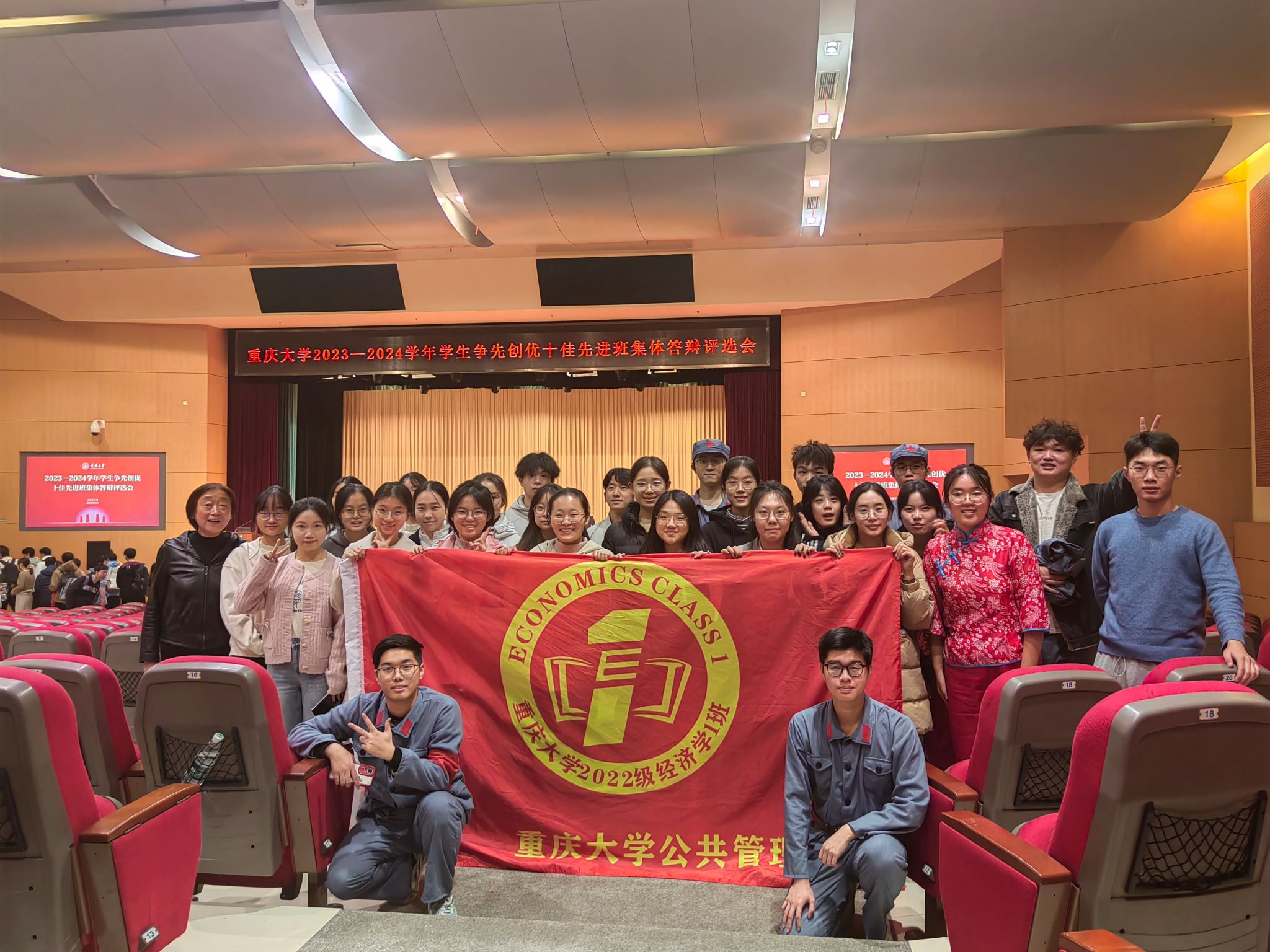 在本次十佳先进班集体评选中,经全校层层选拔,最终有15个班级进入答辩环节。在风采展示和答辩环节中,本科2022级经济学1班以“经世济民挺担当,誓作前锋显作为”为主题,展现了他们一年以来所取得的优异成绩。