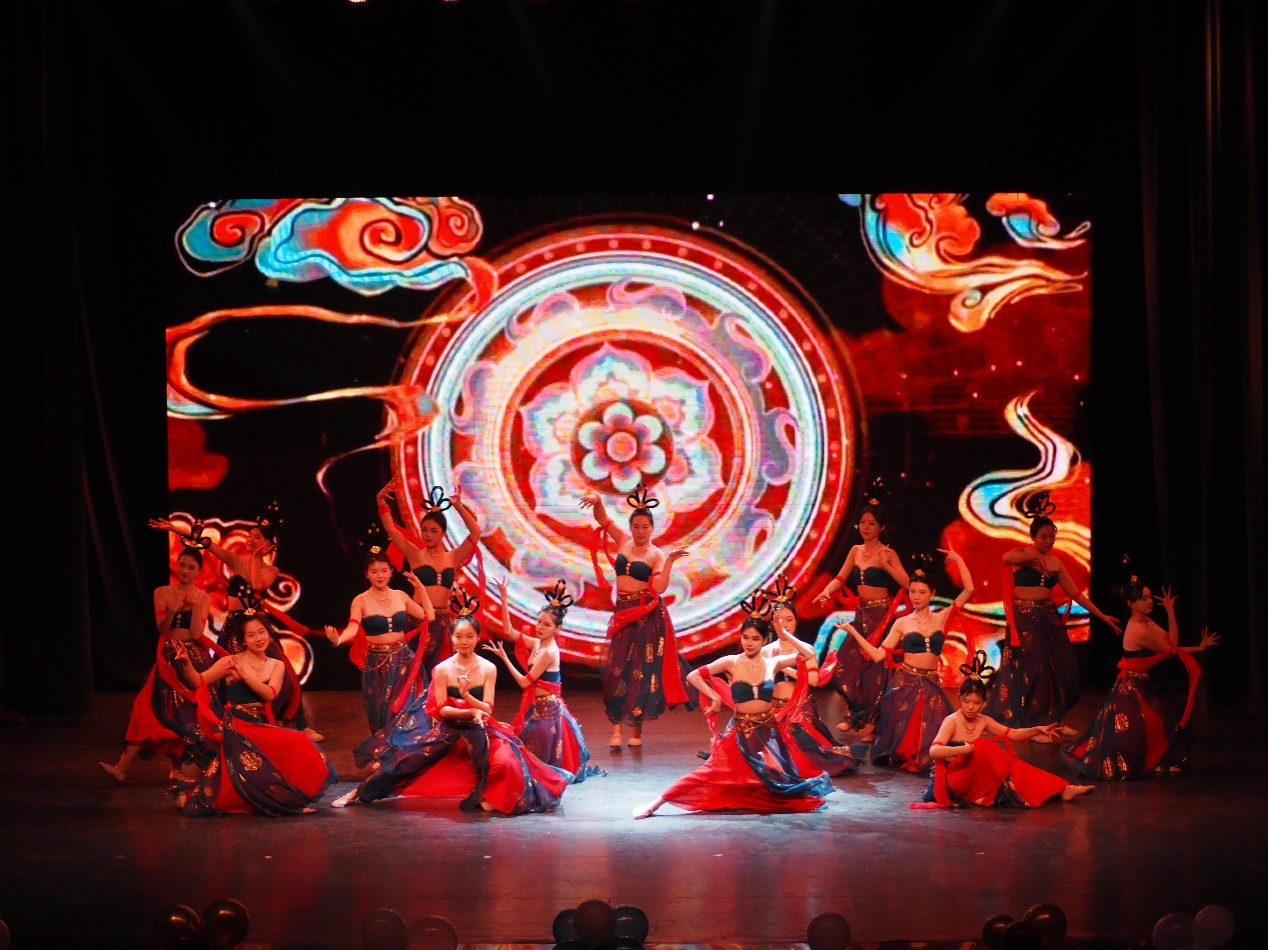 晚会在庄严激昂的舞蹈《党旗飘飘》中拉开帷幕。党旗飘扬,指引着方向,象征着中国共产党带领人民砥砺前行的伟大历程,此项表演旨在激励师生们在喜迎新年的同时,不忘初心、牢记使命,艰苦奋斗、砥砺向前。