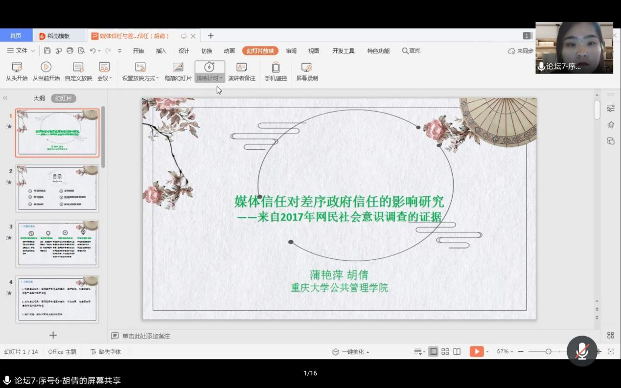 下午15时许,胡倩同学在平行分论坛七:社会治理与民生保障分论坛分享了自己的学术论文,胡倩同学汇报的论文是在电影天堂