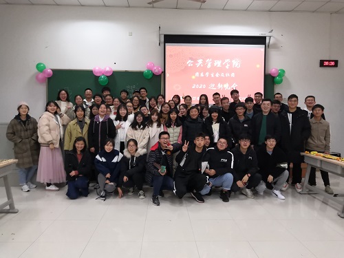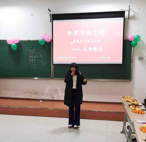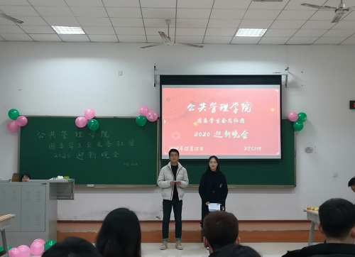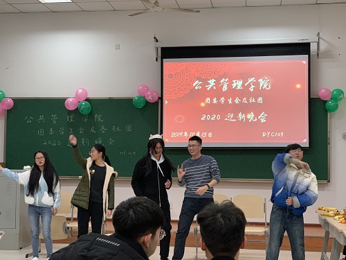 2019年12月15日18:30,公管学院于DYC103举办了本科生团委学生会、各社团2020年迎新晚会。出席本次晚会的老师有学办主任兼18、19级辅导员王丽娟、院团委书记兼16级辅导员徐柳、17级辅导员包晗、辅导员助理谢镇江。学院团委学生会以及各社团成员全员参与。
