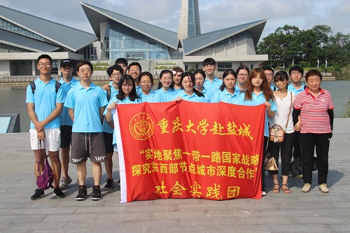 “赴江苏盐城美丽中国”社会实践团在王丽娟老师和龚宏龄老师的带队下,于7月15日至24日来到了江苏省盐城市,开展了为期10天的“实地聚焦一带一路国家战略,探究中西部节点城市深度合作”社会实践活动。为积极响应党中央提出的“一带一路”战略和国家“三下乡”的要求,实践团队的一行22人着眼于盐城这个地形和战略的交汇点,定下“寻中西部城市深度合作”的主题。寻合作,寻的是重庆和盐城两个节点城市优势互补的合作,却典型代表了东西部城市的深度合作。在当地政府和有关部门的大力支持和配合下,他们扎村入户,扎根到广大人民群众中去,开展了支教、交流活动、生活体验、实地考察调研等一系列活动。