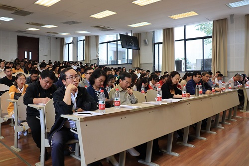于D1137教室成功举办了2019级师生见面会,学院党委书记张玲、院长刘炳胜、党委副书记兼纪委书记袁晓浩、副院长刘渝琳、副院长张鹏、副院长李志及各系老师、学办教务办老师出席了本次师生见面会。会议由学办主任兼18、19级辅导员王丽娟主持。