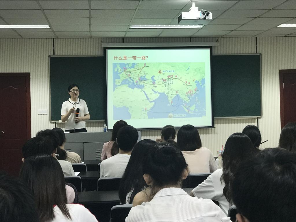 首先,王旭为同学们介绍了我国的“一带一路”倡议的提出背景,以及“一带一路”的途经地区、合作理念与具体影响等内容,她指出,共建“一带一路”不仅是经济合作,还是完善全球发展模式和全球治理、推进经济全球化健康发展的重要途径,更是推动构建人类命运共同体的实践平台,是以各国各地区合作共赢为指向的发展方案。