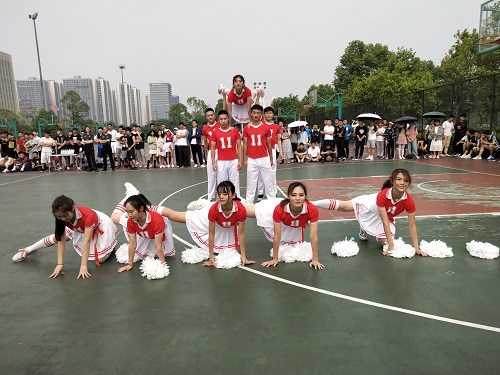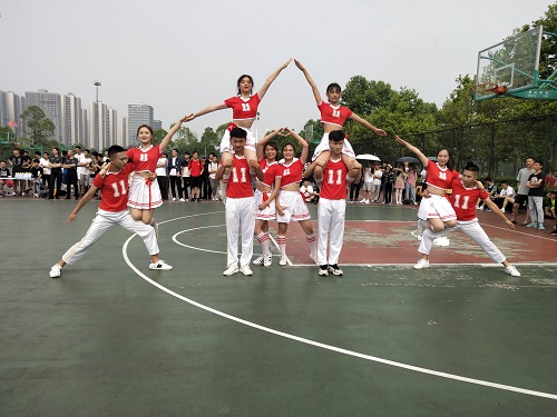 四时整,比赛准时开始。公管学院作为第一组,与外国语学院同场竞技。亮相的第一个动作,公管学院啦啦操队就以一个高难度的托举动作赢得了全场的目光和惊呼。队员们穿着亮眼的红色,踩着鼓点,舞动着手中的花球。他们一次次地完成难度系数极高的一系列动作,以最张弛有力的动作,释放着澎湃的青春热情。尽管在过程中,现场的音乐都出现了一点问题,但队员丝毫没有慌张,不忙不乱地调整动作,并最终以极高的水准顺利完赛。