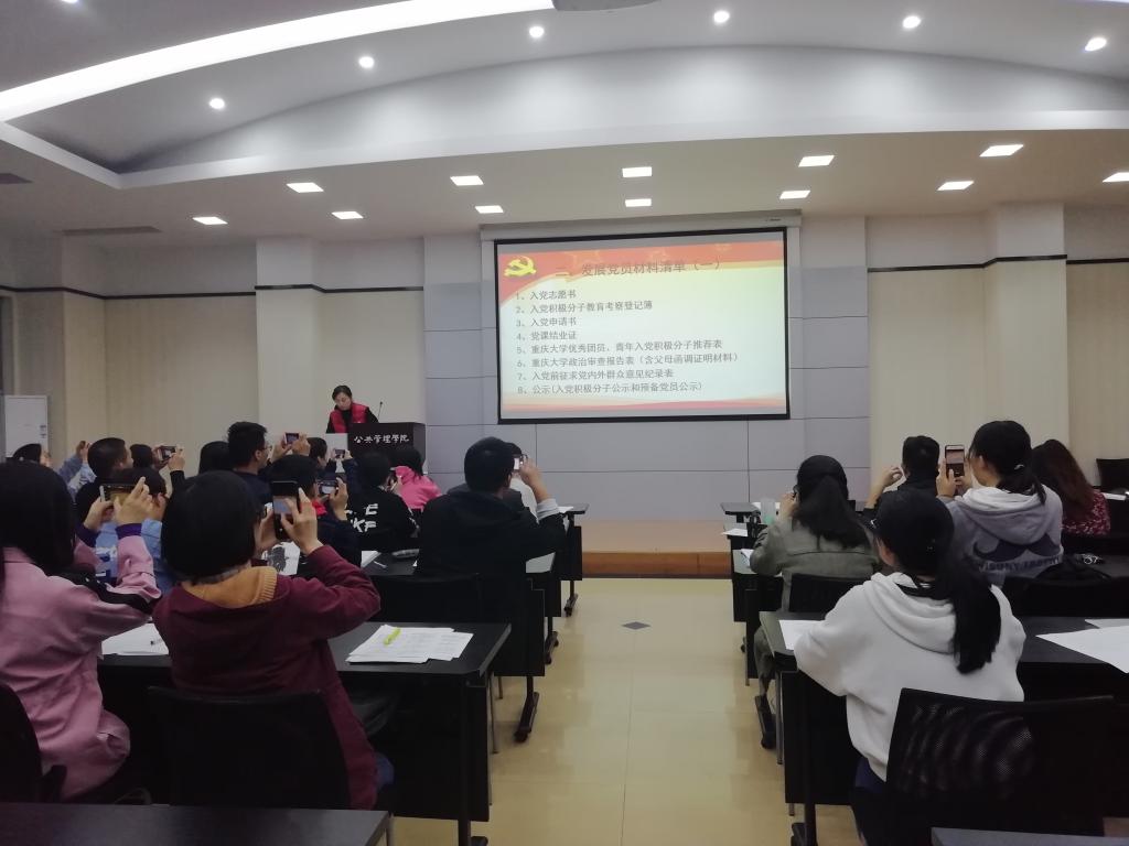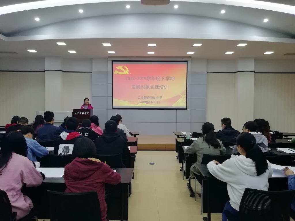 2019331日晚7点,学院党委组织本学期发展对象在学院102多功能厅进行党课培训。本学期发展对象、支部书记、支委等60余人参加了培训。本次培训由组织员何薇老师主