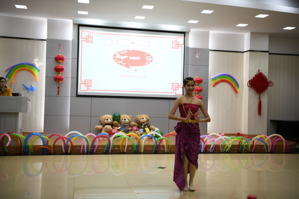 建校90周年的祝福;随后歌曲《至少还有你》和《往后余生》婉转动人,引得观众不禁轻轻唱和。MPA班舞蹈《今天开始》更是引发在场师生的阵阵喝彩,优美的舞姿在场中央吸引了全场目光。留学生《泰国舞蹈》为我们展现了一幅柔美绚丽的画面。年会节目与抽奖、游戏活动交叉进行,观众们在欣赏节目的同时也能参与到游戏当中,将现场气氛逐渐推向高潮。
