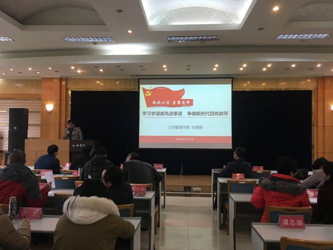 党委在学院二楼多功能厅组织全体教职工深入学习李德威先进事迹。学院院长刘炳胜作了题为《学习李德威先进事迹,争做新时代四有教师》的报告。学院党委书记张邦辉主持学习。