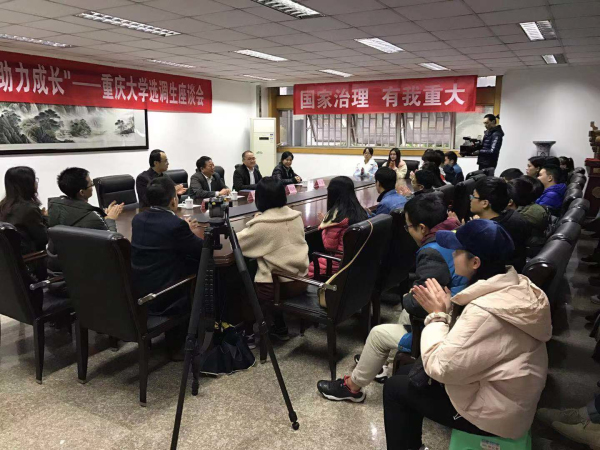学生就业指导中心副主任孙江林、公管学院党委副书记刘淳出席座谈会。来自全校有意报考广西自治区选调生的应届本科、硕士毕业生共50余人参加座谈会。