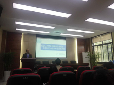 陈永进教授作为“一号学术分论坛”的主持人,做了题为“基层公务员政务诚信行为现状及其社会责任的关系研究”的学术报告。主要内容涵盖了基层公务员政务诚信行为的现状及其与社会责任之间的关系,及“通过促进基层公务员的诚信行为,加强其社会责任心,从而提升政府公信力”这一模型的构建,这一构想得到了与会专家学者的强烈支持与鼓励,并收获了众多宝贵建议。
