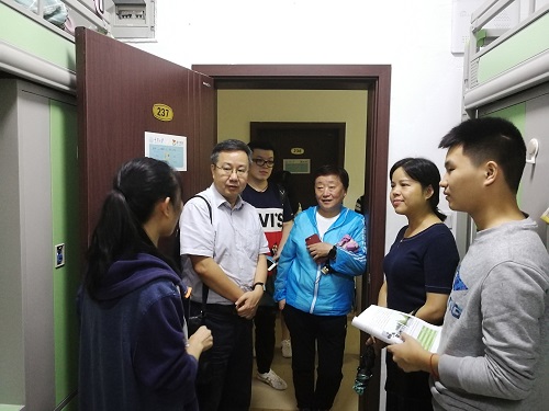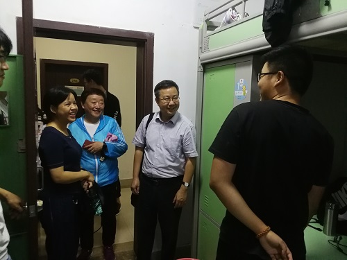 2018年9月7日晚上七点,公管学院党委书记张邦辉,党委副书记刘淳、学办主任兼17、18级辅导员王丽娟、团委书记兼16级辅导员徐柳、15级辅导员包晗等领导、老师一同来到学生住宿区竹二宿舍楼和松四宿舍楼,对17、18级学生看望慰问,尤其是对全体新生送去亲人父母般的关怀。