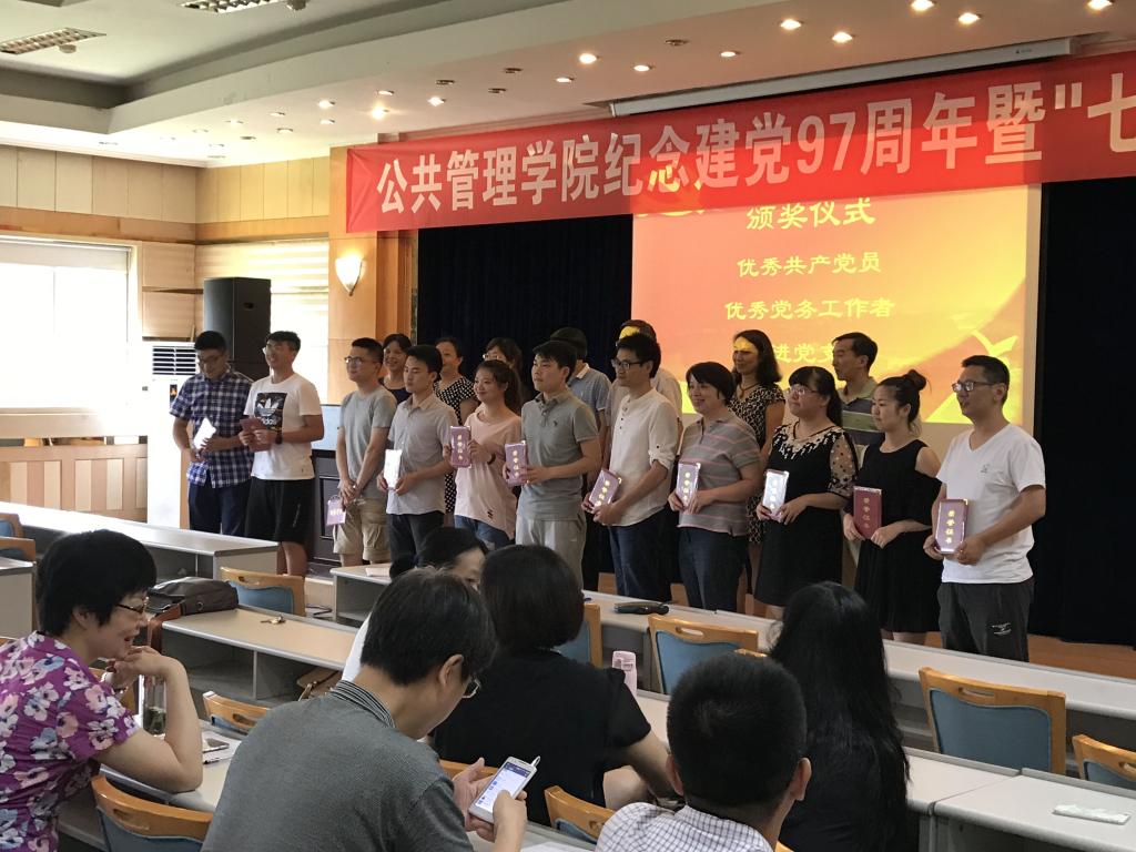 委员会关于表彰优秀共产党员、优秀党务工作者、先进党支部的决定》,对丁从明等63名优秀共产党员、王丽娟等11名优秀党务工作者和教工二支部等4个先进党支部予以表彰。学院党委委员上台为获奖的集体和个人颁奖。