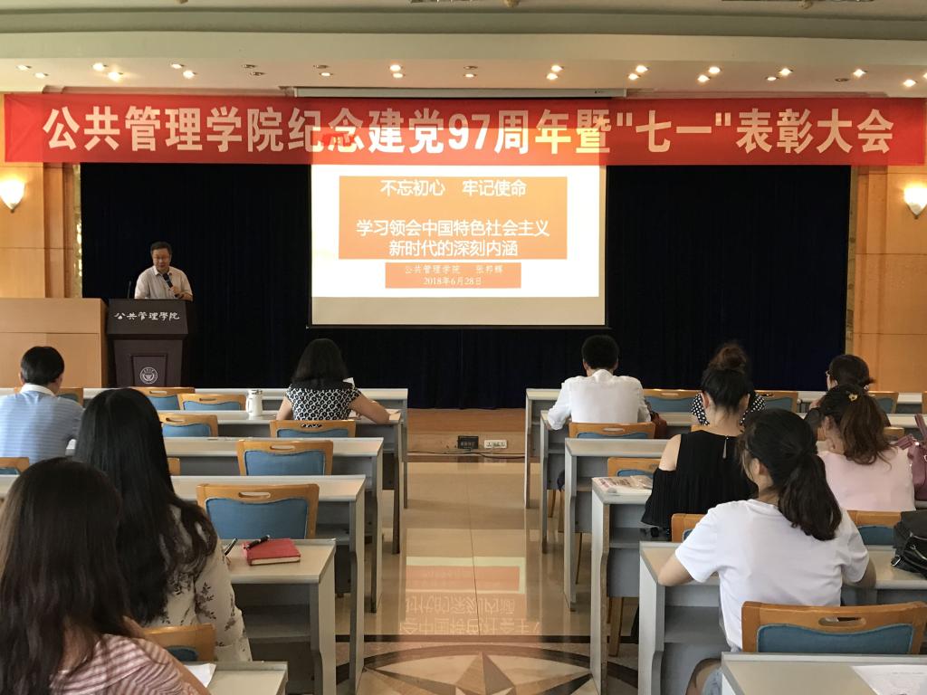 党委在学院多功能厅召开纪念建党97周年暨“七一”表彰大会。学院全体党委委员、教职工党员以及受表彰的个人和先进集体代表参加大会。大会由学院党委副书记、纪委书记刘淳主持。