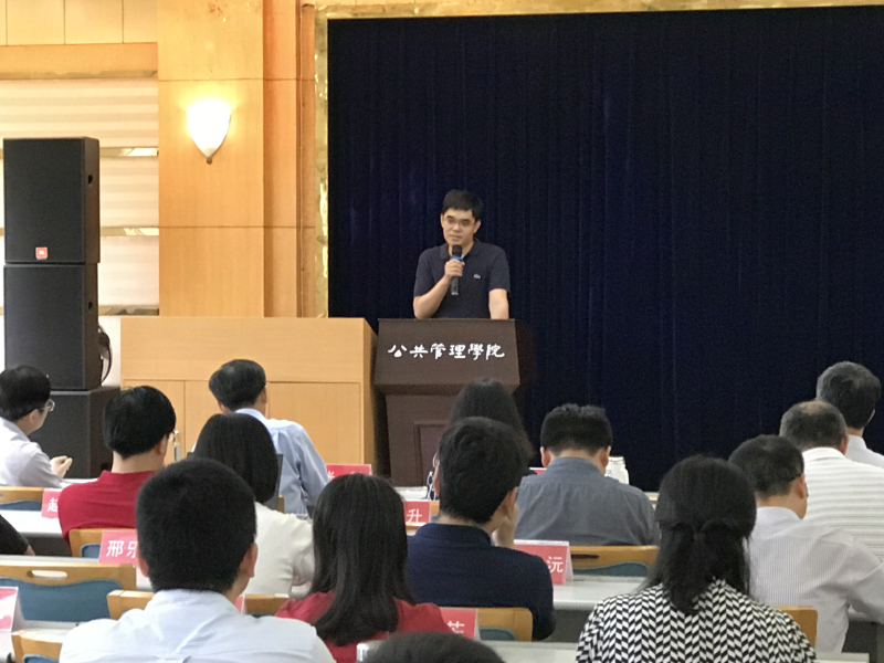 ,能和大家相遇相识实属难得,他祝贺学院前期取得的以获批公共管理一级学科博士点为代表的各项成果,希望能够继续发扬优秀传统,推动学院学科建设、人才引进等工作取得更好成绩。他表示,自己在未来工作中将始终坚持民主集中制、学院重大事项集体决策,坚持群策群力、注重发挥大家的集体智慧,坚持实事求是、求真务实,竭尽所能为学院广大师生创造更多平台和机会,和大家共同为学院的长远发展贡献力量。