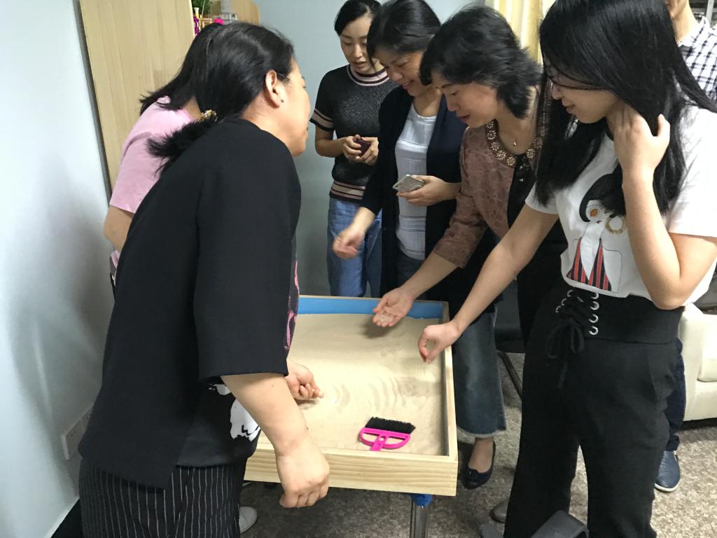 揭牌后,大家一同参观调研了工作室的筹备成果,工作室墙上悬挂的详细师资介绍、丰富的心理咨询书刊、专业与趣味并存的沙盘设备以及温馨舒适的装潢风格,得到了在场专家的一致认可。随后,大家进行座谈交流,集思广益,共同对工作室未来的工作开展提出指导建议和热切期望。